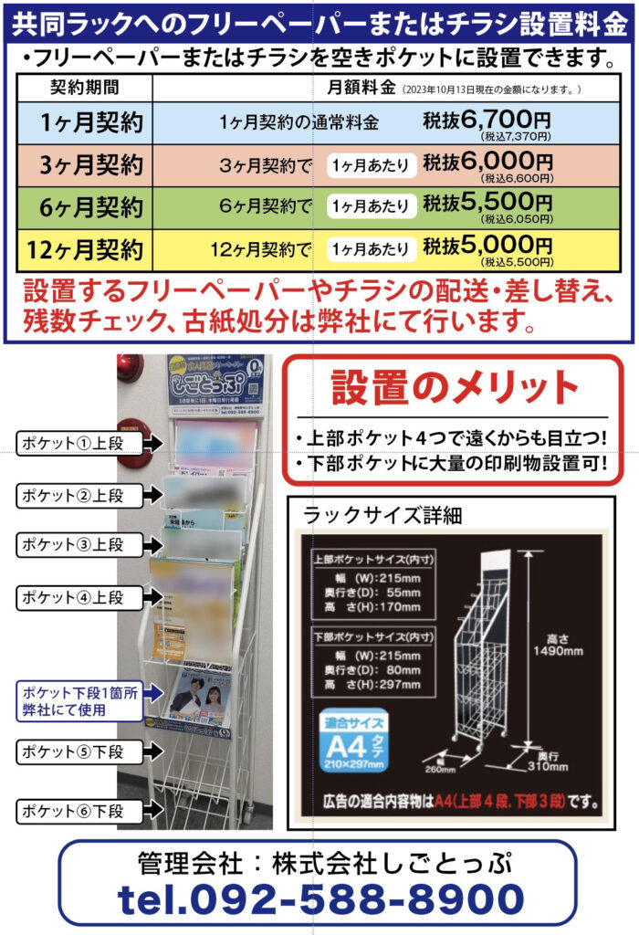 弊社共同ラックへフリーペーパー・チラシ・広告物を設置できます!
