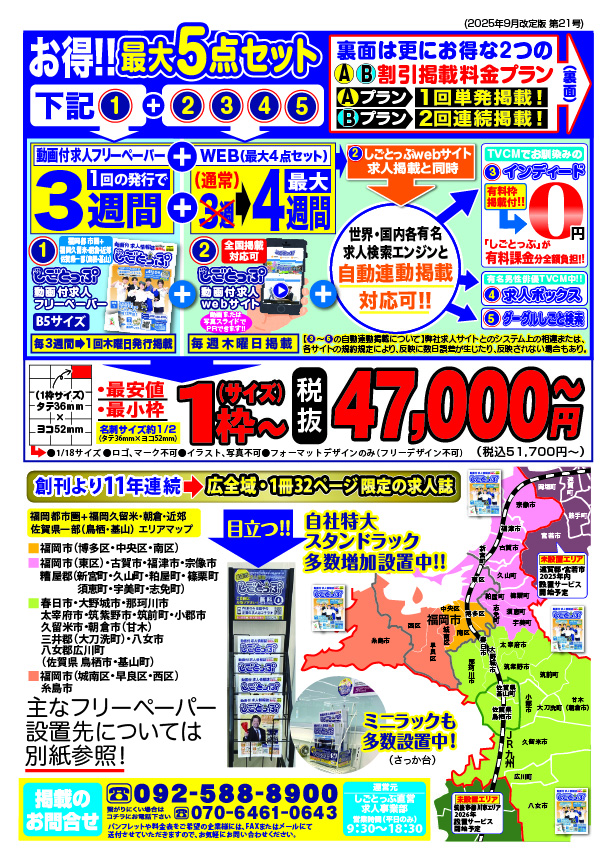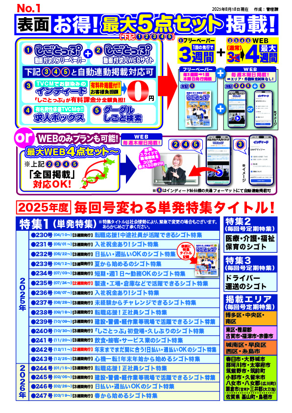 動画付 求人情報誌しごとっぷ発行スケジュール