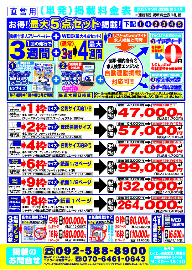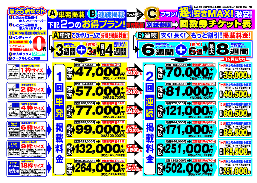 掲載料金・・・2025月9月1日より新料金へ改定しました!