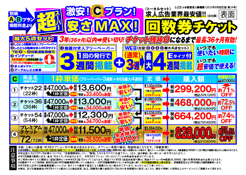 上記Aプラン・Bプランよりも更に超圧倒的にお得な回数券チケット(Cプラン)