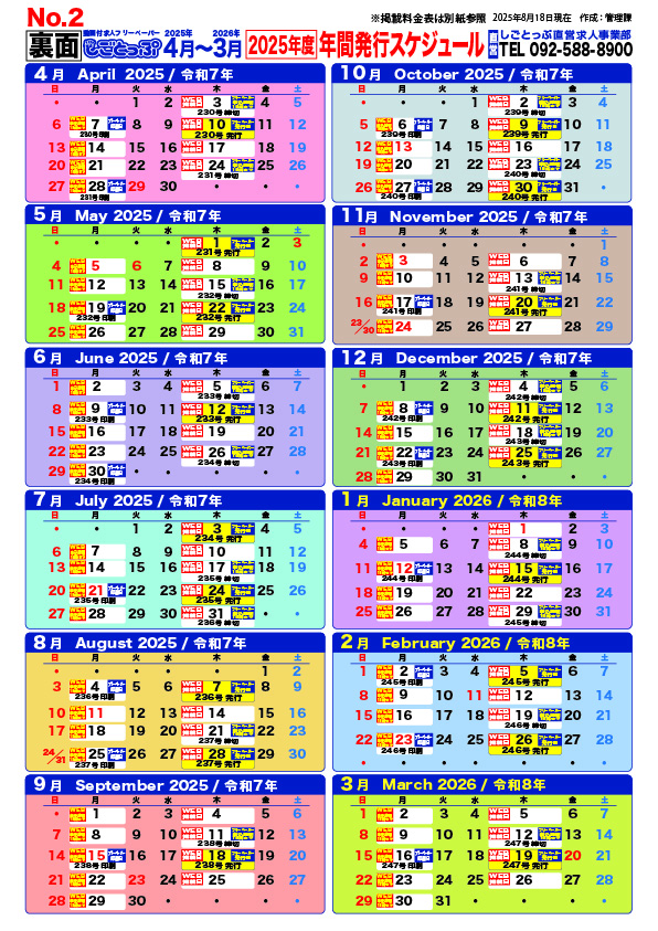 しごとっぷ発行スケジュール(表面・裏面)